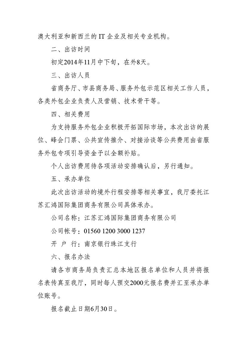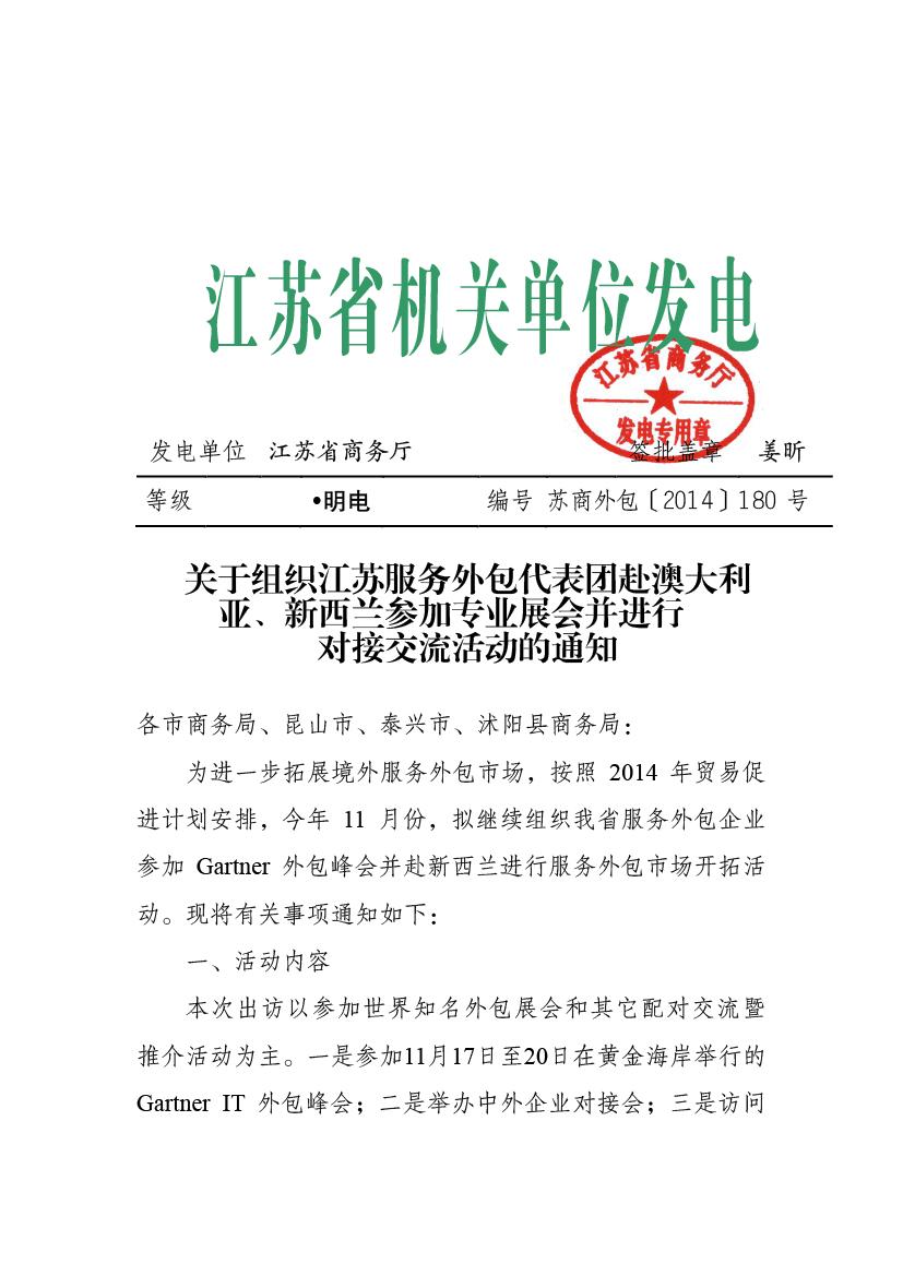 關于組織江蘇服務外包代表團赴澳大利亞、新西蘭參加專業(yè)展會并進行對接交流活動的通知